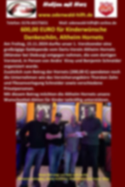 Unter dieser Rubrik führen wir unsere Spender auf, wir würden uns freuen wenn Sie diese bei Ihrem Auftrag oder Einkauf berücksichtigen würden.